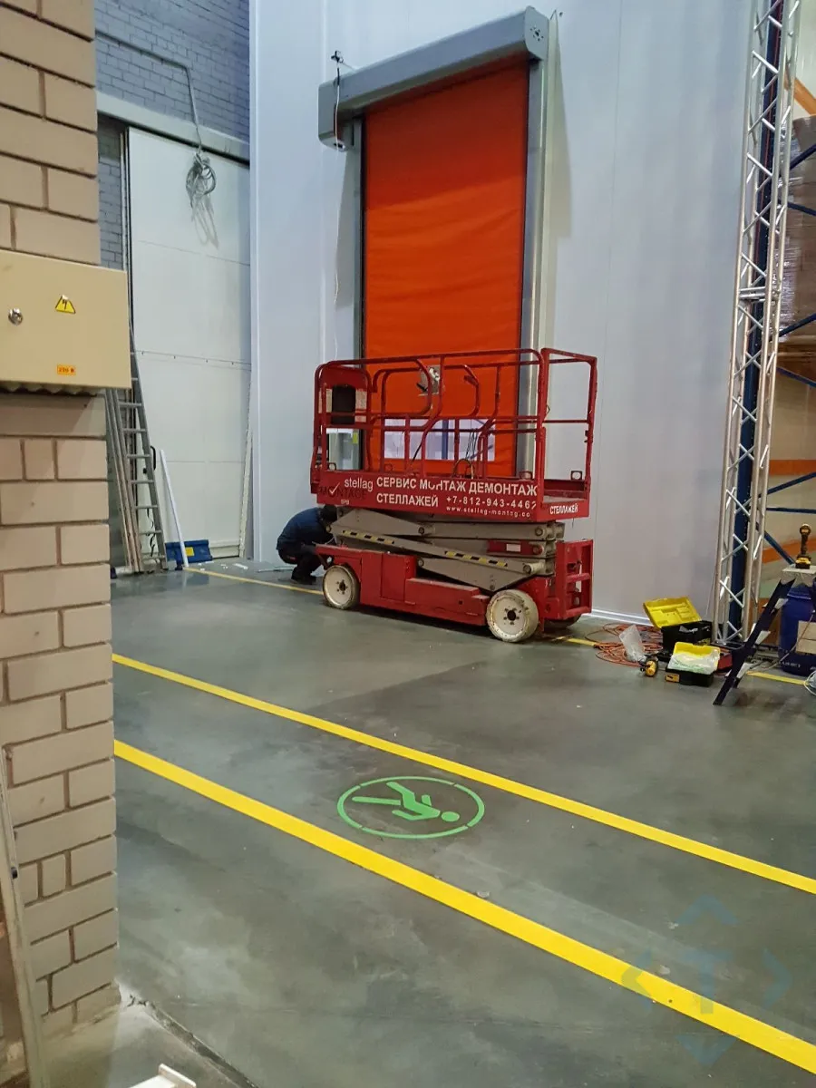 | Особенности / пожелания | 1. Оборудование должно обеспечивать процесс заезда/выезда погрузчика и штабелёра (скоростные рулонные ворота SpeedRoll SDI для внутреннего использовния) 2. Закрытие проема специализированной распашной дверью для прохода персонала из зоны с положительной температурой в зону с отрицательной. 3. Безопаность элекслуатации скоростных рулонных ворот SpeedRoll SDI - установка оптосенсоров для предотвращения поломки. 4. Контроль процесса подготовки металлокаркаса под скоростные рулонные ворота SpeedRoll SDI |