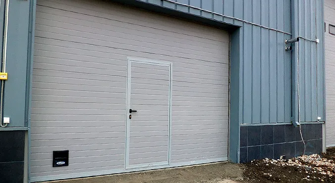 Промышленные секционные ворота из стальных сэндвич-панелей с торсионным механизмом ISD01